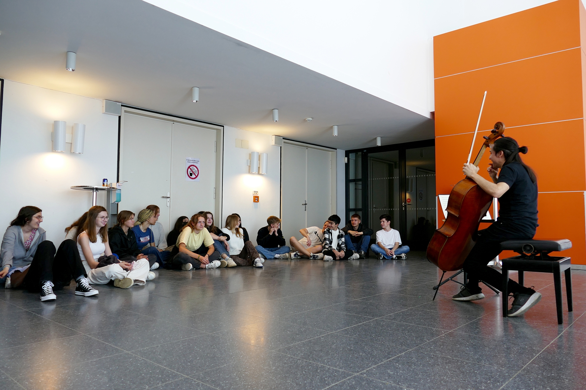 Der Jahrgang 7 bekam eine ausführlich vorbereitete Mobbingpräventionsschulung vom Mobbinginterventionsteam unserer Schule. Das Oberthema dieses Workshops lautete „Wir achten die Grenzen unserer Mitschüler:innen“. Der Workshop für den 9. Jahrgang wurde von externen Referent:innen des „Schwarze Schafe e.V.“ geleitet, die sich mit ineinandergreifenden Formen von Ausgrenzung beschäftigten. Der Jahrgang 10 nahm an einem Vortrag über Wohnungslosigkeit von Thomas Eichler von „Asphalt“ sowie an einer sozialen Stadtführung, organisiert von „Asphalt“ teil.