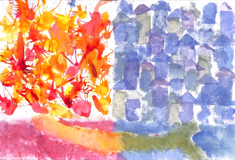"In der verzauberten Stadt ist es immer kalt und auch alles, was in die Stadt kommt, wird in kalte Farben verwandelt. Im warmen Drachenwald, der neben der Stadt beginnt, soll es einen weisen Drachen geben, der den Zauber rückgängig machen kann…"