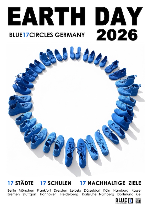 Die Klasse 11 b mit Frau Kronast und die Klasse 10 C mit Frau Stagge nehmen teil und gestalten im Maschpark hinter dem Rathaus einen Beitrag zur Installation „Blue17Circles“ – einem hybriden Kunstwerk, das analog im öffentlichen Raum und digital im Internet wirkt. Für das Projekt werden blau angemalte Schuhe in Kreisform angeordnet. Dadurch setzen wir uns zusammen mit den jungen Menschen der anderen 16 Städte aus allen Teilen der Bundesrepublik an diesem Tag künstlerisch mit den 17 Zielen für nachhaltige Entwicklung der Vereinten Nationen auseinander und unterstreichen damit unser politisches Engagement bezogen auf den Klimaschutz.